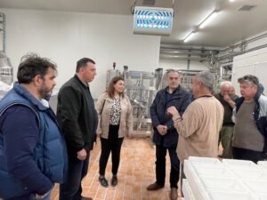 Στις εγκαταστάσεις του αγροτικού συνεταιρισμού Πέτρας συναντήθηκε με τον πρόεδρο, τα μέλη του ΔΣ, τον διαχειριστή, εργαζόμενους και με κτηνοτρόφους, ενώ είχε την ευκαιρία να δει από κοντά το νέο τυροκομείο και τις αποθήκες ζωοτροφών του συνεταιρισμού.
